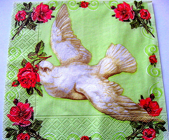 servetel hartie cu porumbelul alb si trandafiri roz